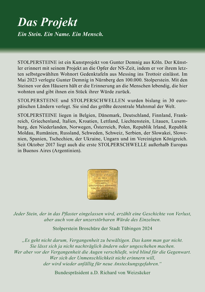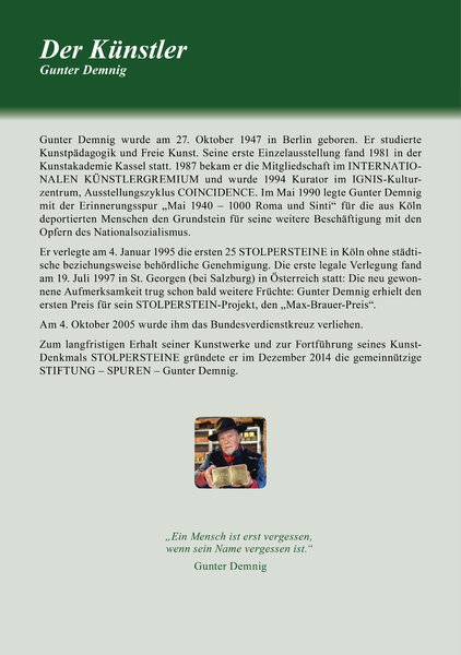 Bedanken möchten wir uns vor allem bei Herrn Gunter Demnig, dem Gründer der Stolperstein-Initiative (er hat in Europa schon mehr als 120.000 Stolpersteine gesetzt), dass er es sich nicht nehmen ließ