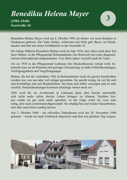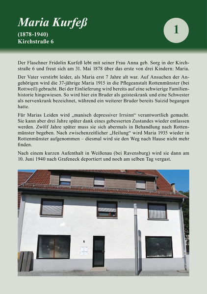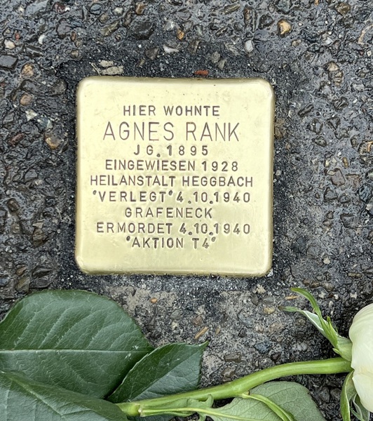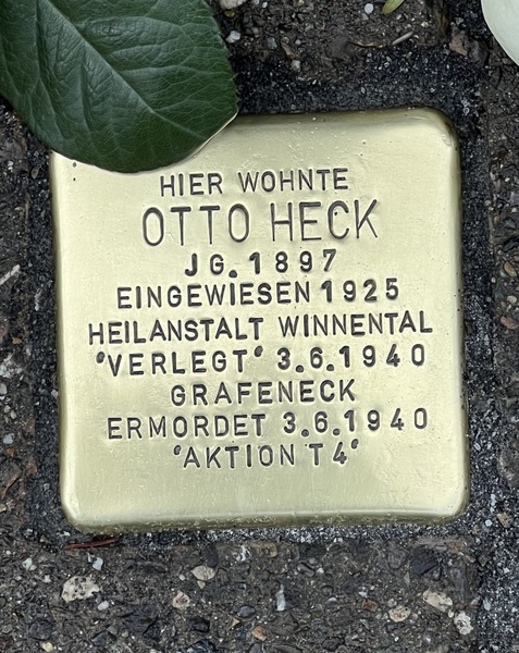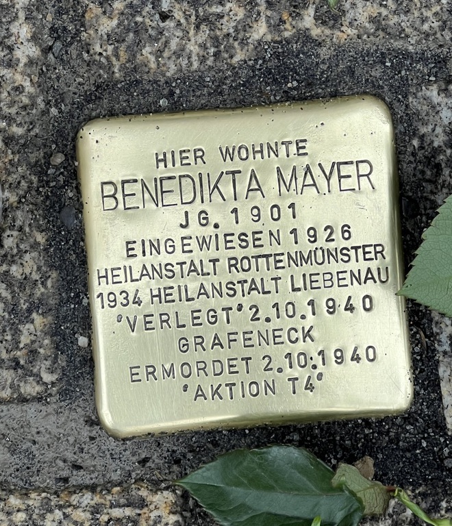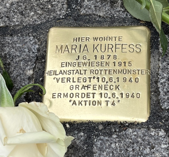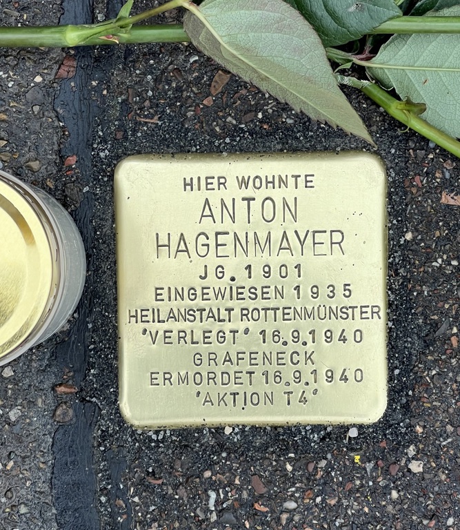 Die Stolpersteine tragen den Namen des Opfers, den Geburtsjahrgang, das Datum der Einweisung in eine Heilanstalt, das Datum der Verlegung nach Grafeneck und das Datum der Ermordung, sowie das