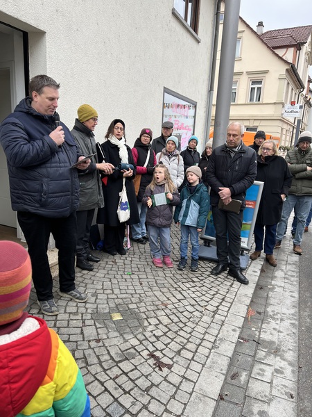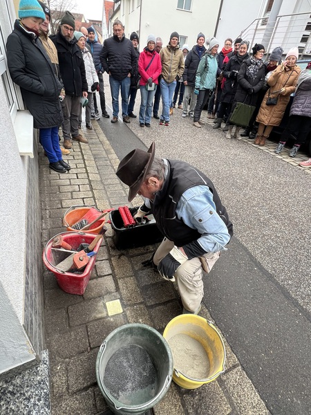 Am 20.02.2026, um 9.00 Uhr, begann die Verlegung der Stolpersteine in Anwesenheit des Künstlers Gunter Demnig. Wir waren freudig überrascht über die große Anzahl an Teilnehmer aus der Bevölkerung.